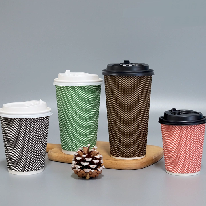4oz 8oz 12oz 16oz Disposable Eco Friendly Ripple/double Wall Insulated Hot Coffee Paper Cups with Lid