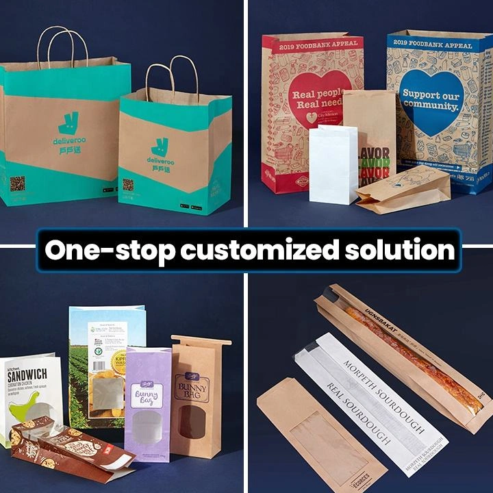 Elevate your brand’s image with these sophisticated and eco-friendly custom-printed paper bags. Designed for retail, boutiques, and gifts, these bags are crafted from high-quality Kraft paper, offering a perfect blend of durability and rustic charm. They are an excellent canvas for your branding, supporting high-definition flexographic printing to showcase your logo and designs vividly, ensuring your business stands out.